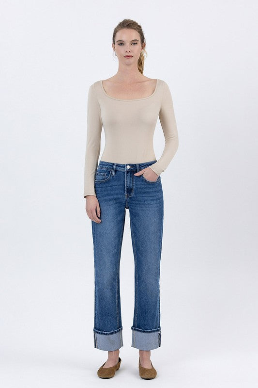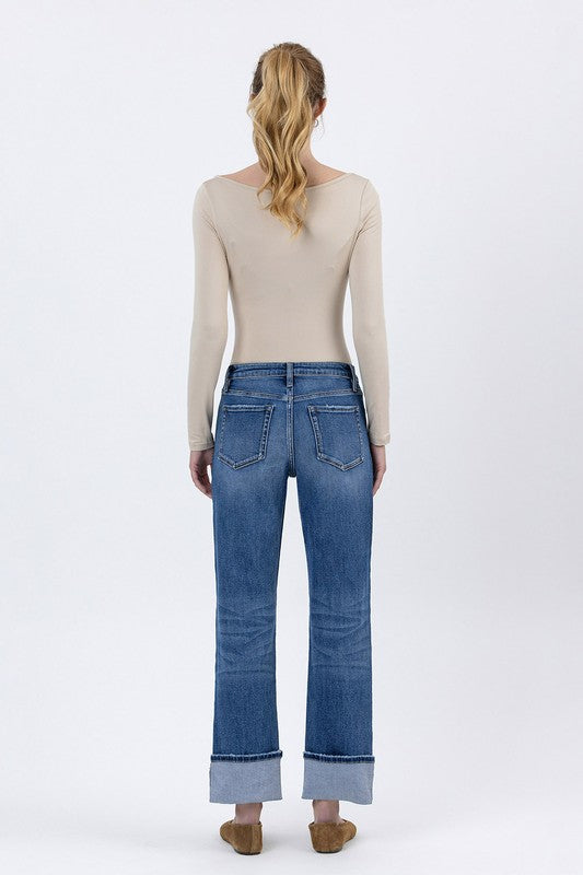 HIGH RISE CUFFED ANKLE STRAIGHT JEANS