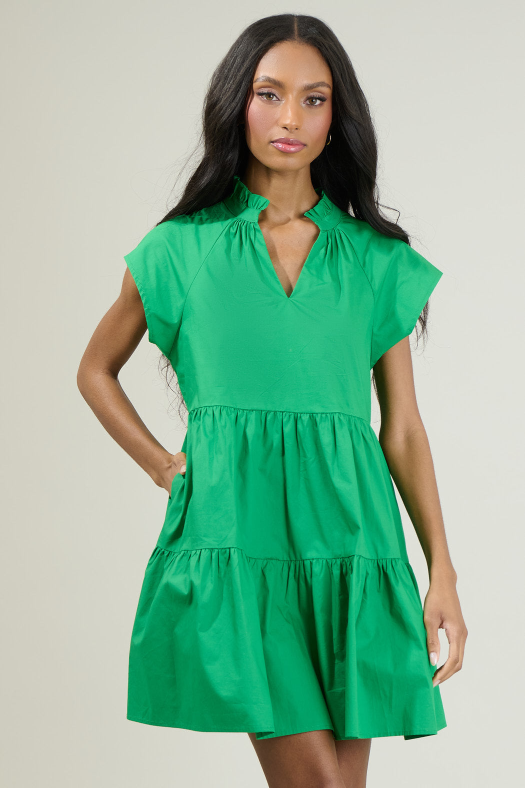 Green Janelly Poplin Tiered Mini Dress