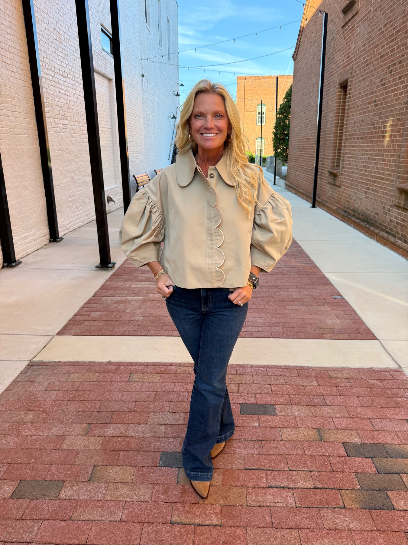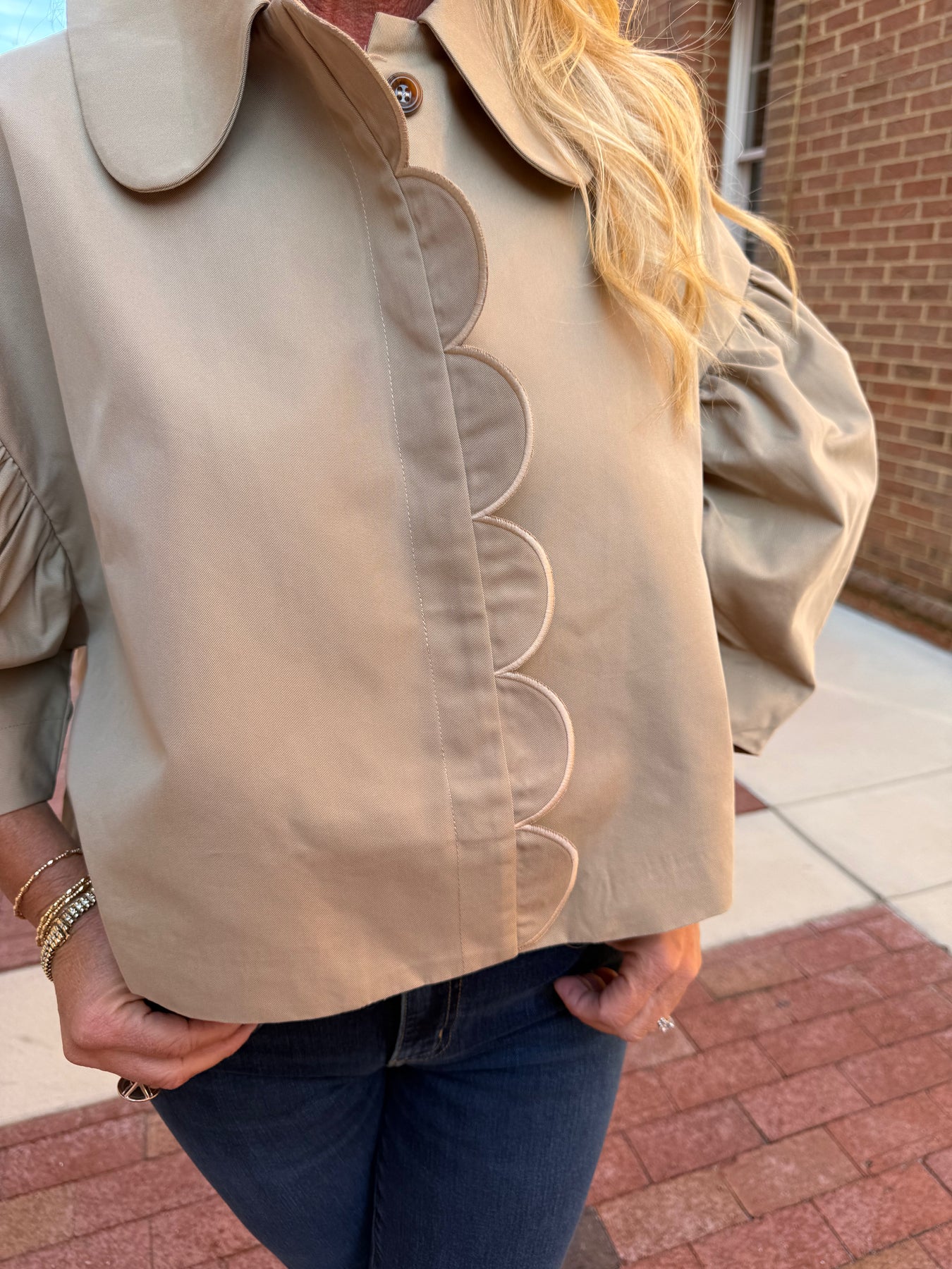 Puff Sleeve Scallop Trim Jacket