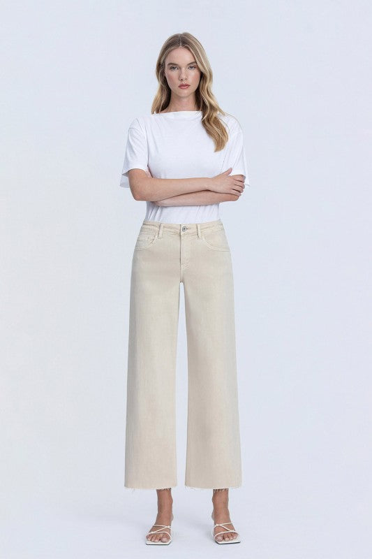 Cream High Rise Crop Wide Leg Jeans