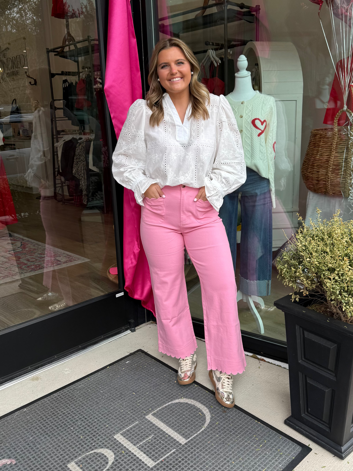 {"id":47875557753083,"title":"Small \/ White","option1":"Small","option2":"White","option3":null,"sku":"139010","requires_shipping":true,"taxable":true,"featured_image":{"id":48906185736443,"product_id":9222502482171,"position":5,"created_at":"2026-01-19T16:32:14-05:00","updated_at":"2026-01-23T14:45:51-05:00","alt":null,"width":1020,"height":1668,"src":"\/\/thekindredboutique.com\/cdn\/shop\/files\/0aae11a7Screenshot_202026-01-19_20at_204.25.50_E2_80_AFPM.png?v=1769197551","variant_ids":[47875557753083,47875557818619,47875557884155]},"available":true,"name":"Scalloped Detail Wide Leg Pant - Small \/ White","public_title":"Small \/ White","options":["Small","White"],"price":6800,"weight":0,"compare_at_price":6800,"inventory_management":"shopify","barcode":"P29031","featured_media":{"alt":null,"id":40505129566459,"position":5,"preview_image":{"aspect_ratio":0.612,"height":1668,"width":1020,"src":"\/\/thekindredboutique.com\/cdn\/shop\/files\/0aae11a7Screenshot_202026-01-19_20at_204.25.50_E2_80_AFPM.png?v=1769197551"}},"requires_selling_plan":false,"selling_plan_allocations":[]}