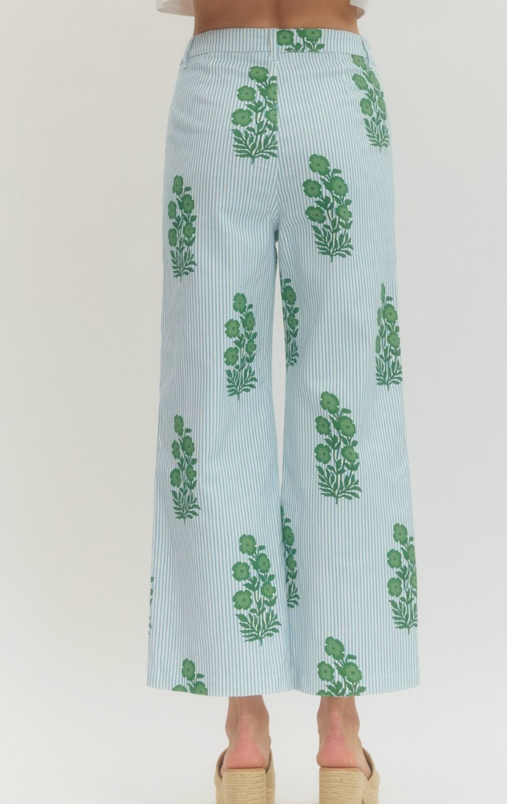 Striped Floral Wide Leg Pant