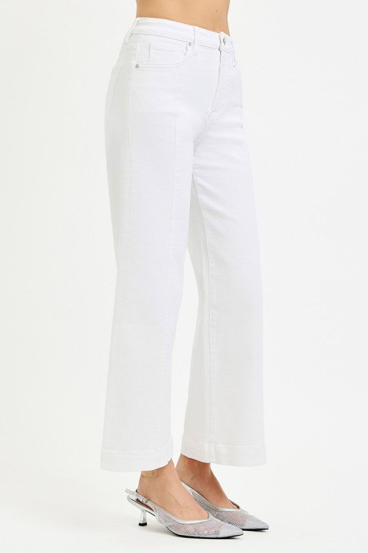 White Tummy Control High Rise Crop Wide Leg Jeans