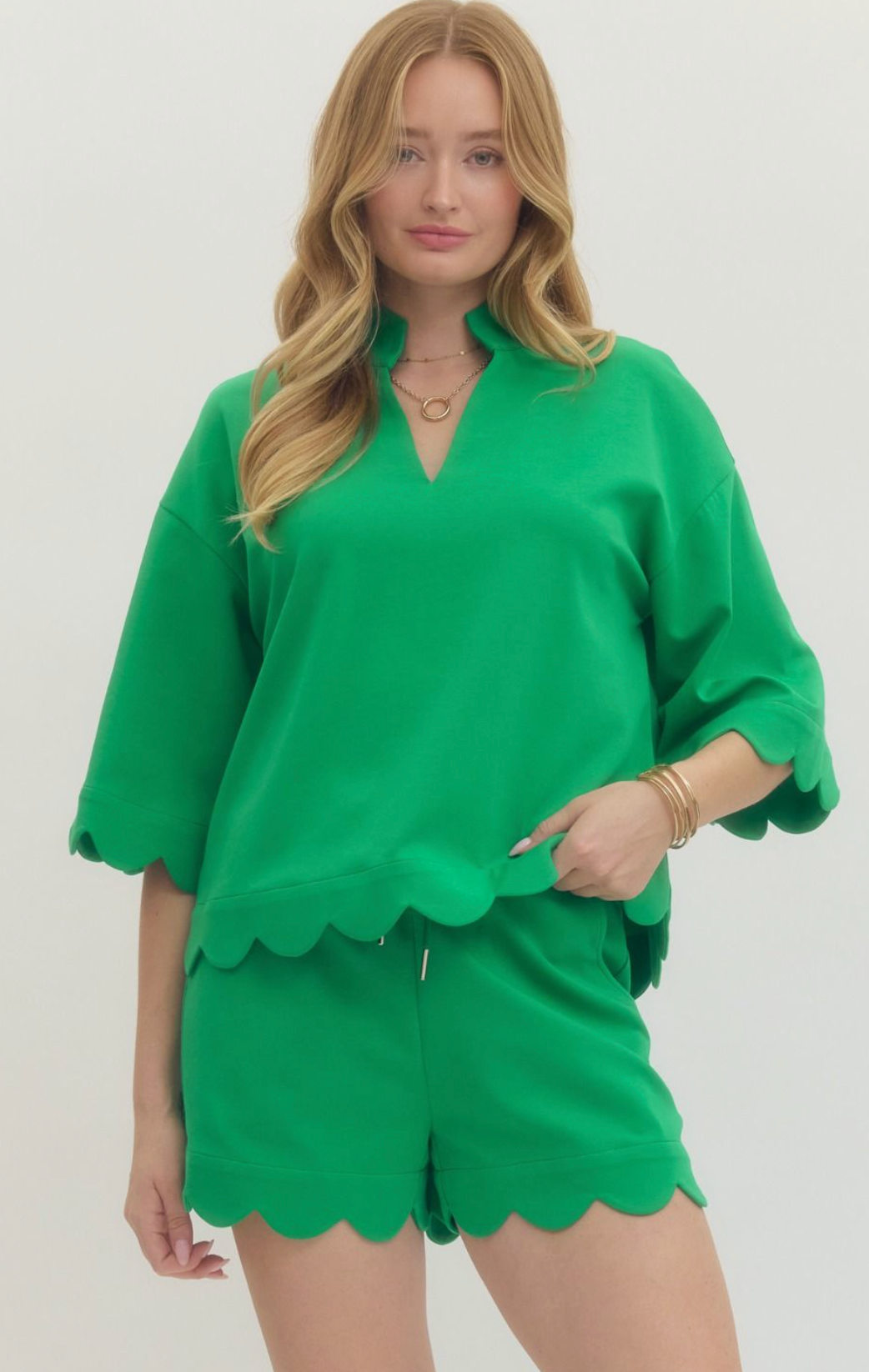 Green Scalloped Jersey Set