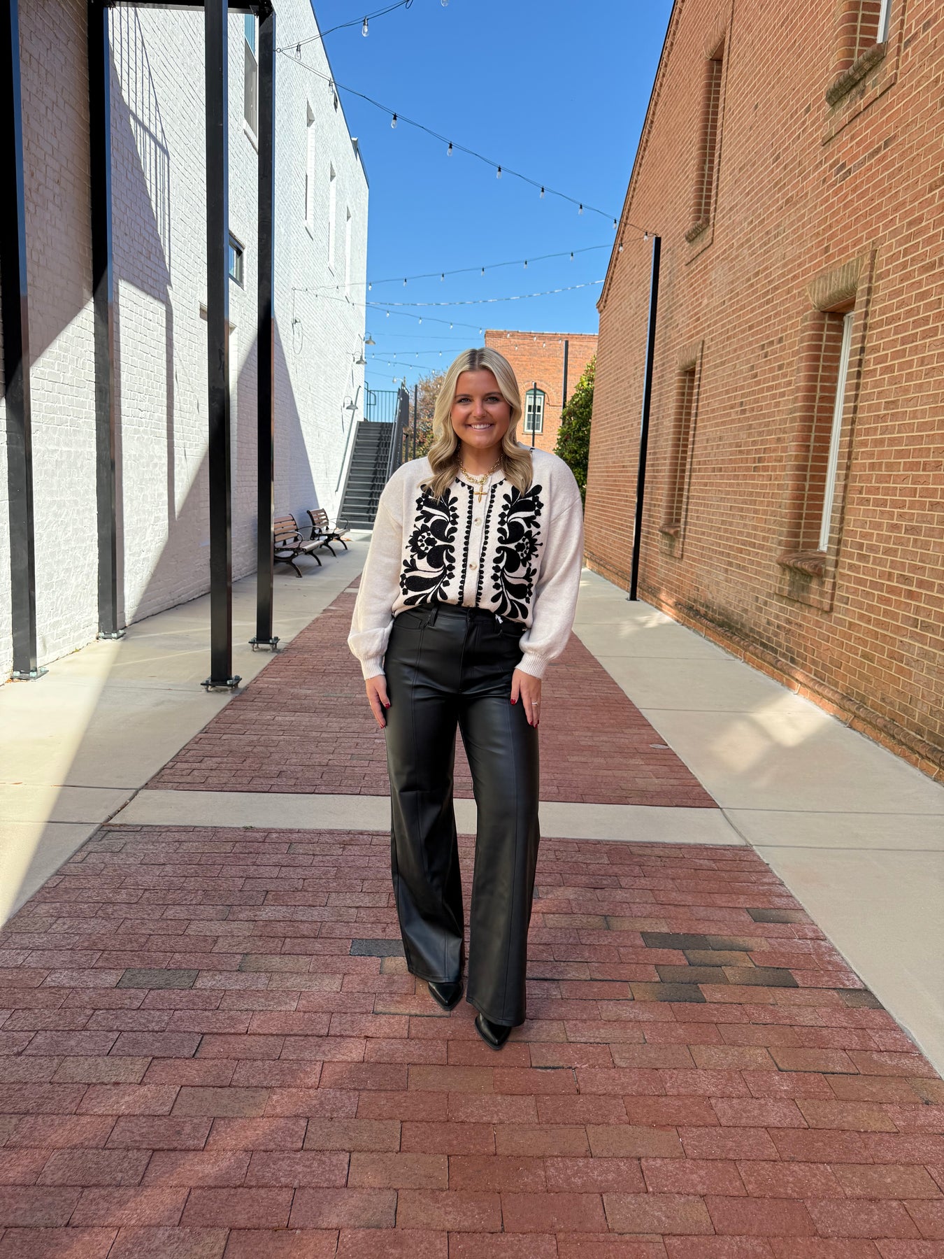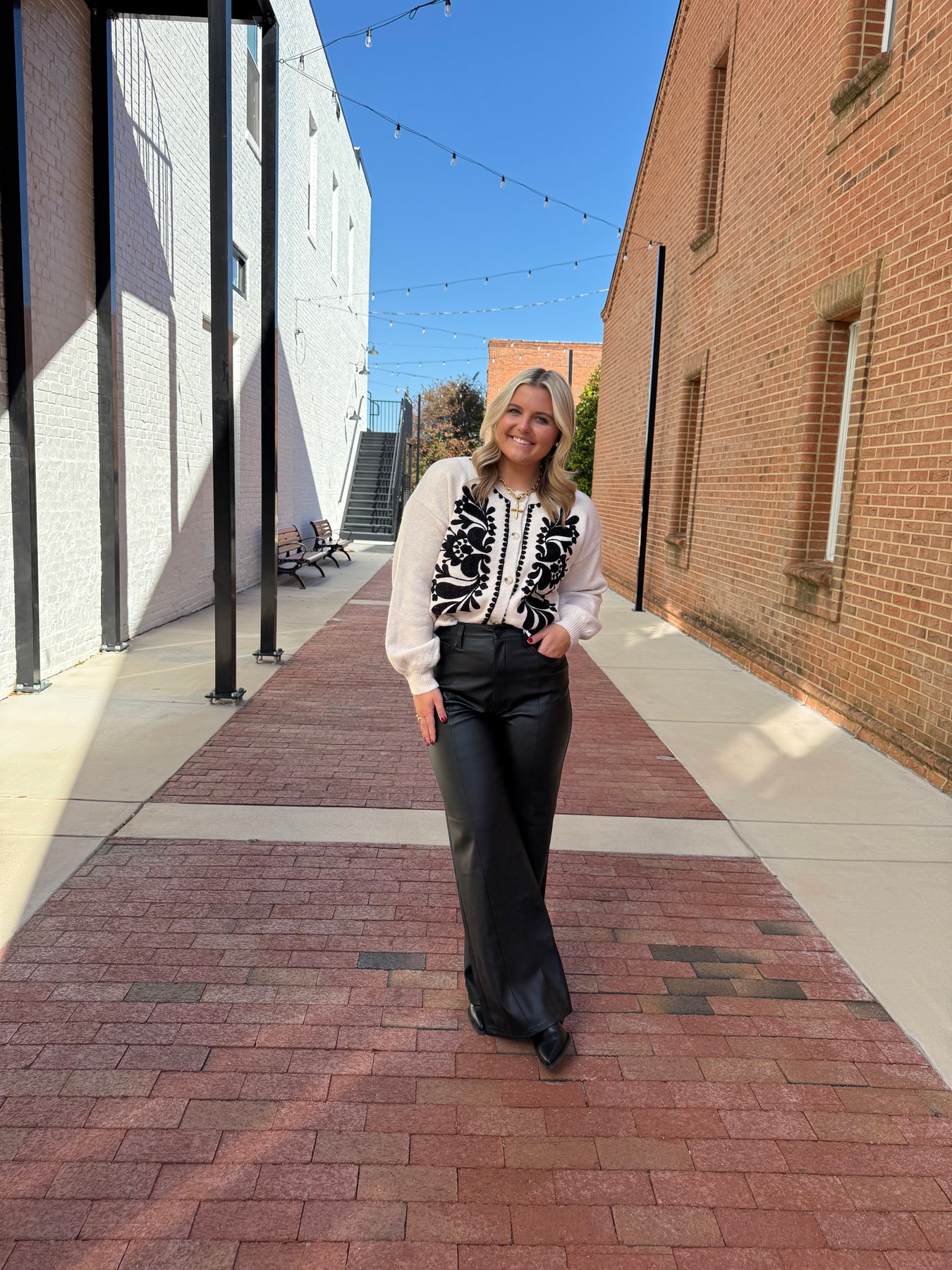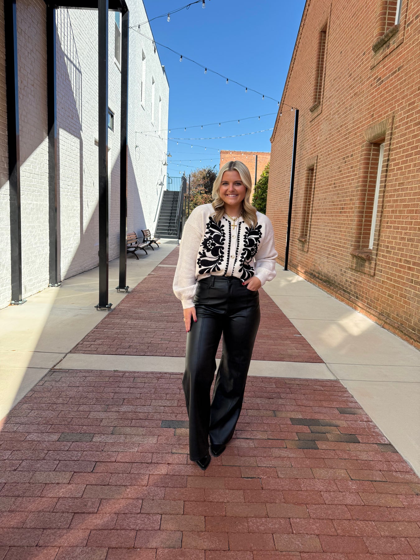 Cream and Black Embroidered Sweater Cardigan
