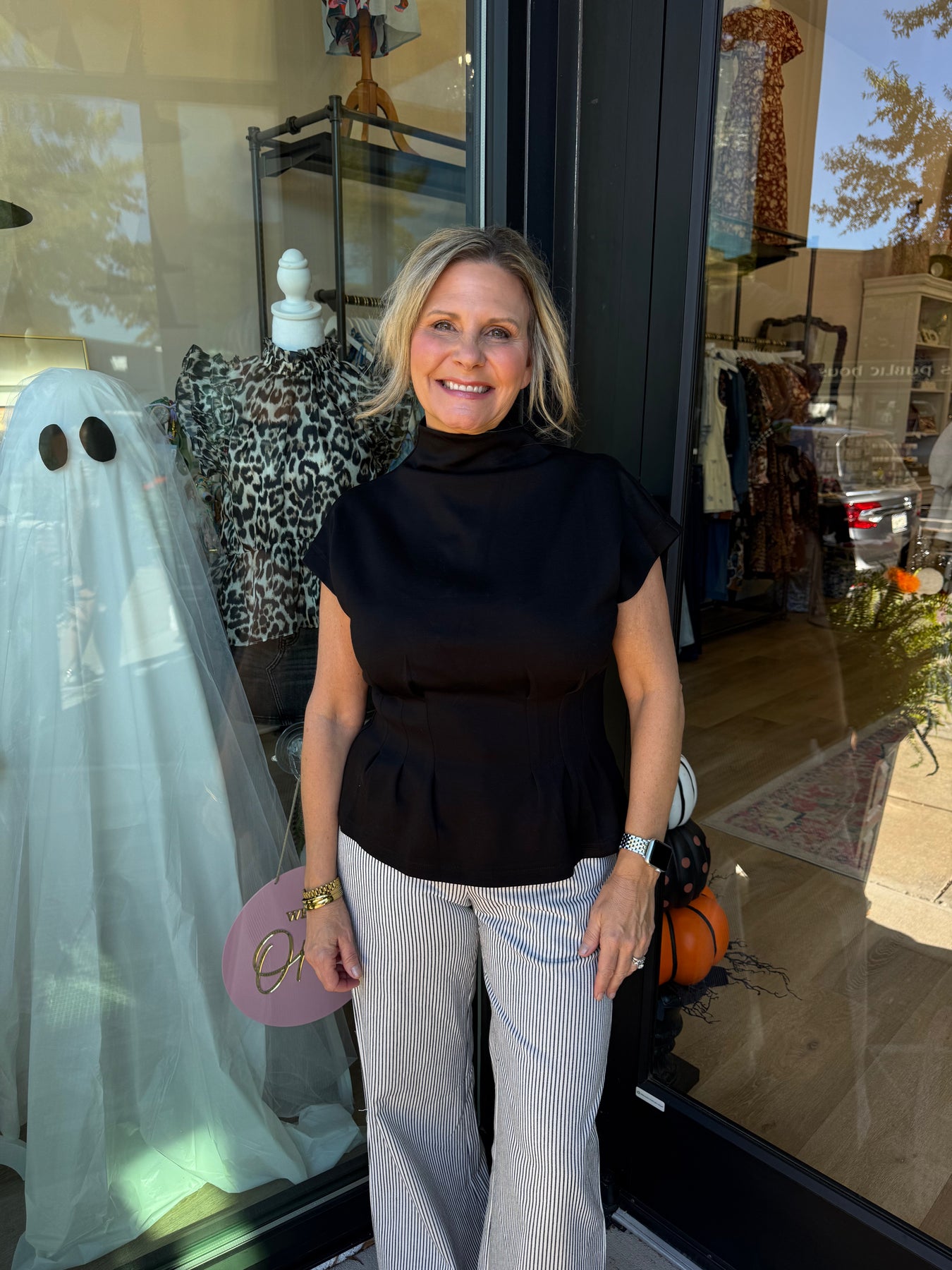Black Pleated Waist Mock Neck Top