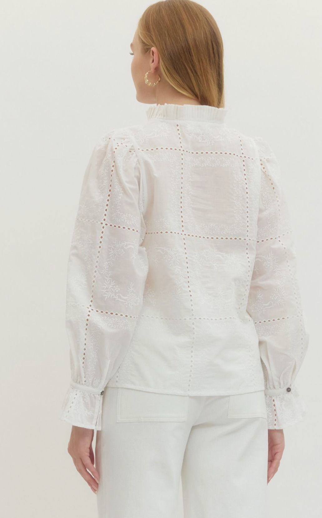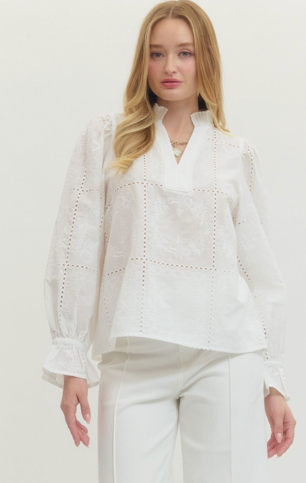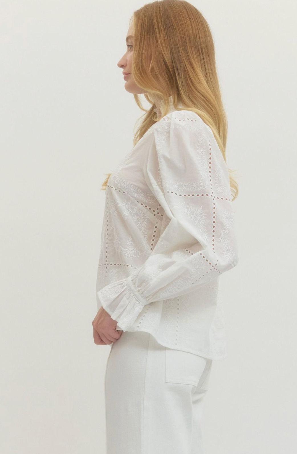 White Embroidered Long Sleeve Top